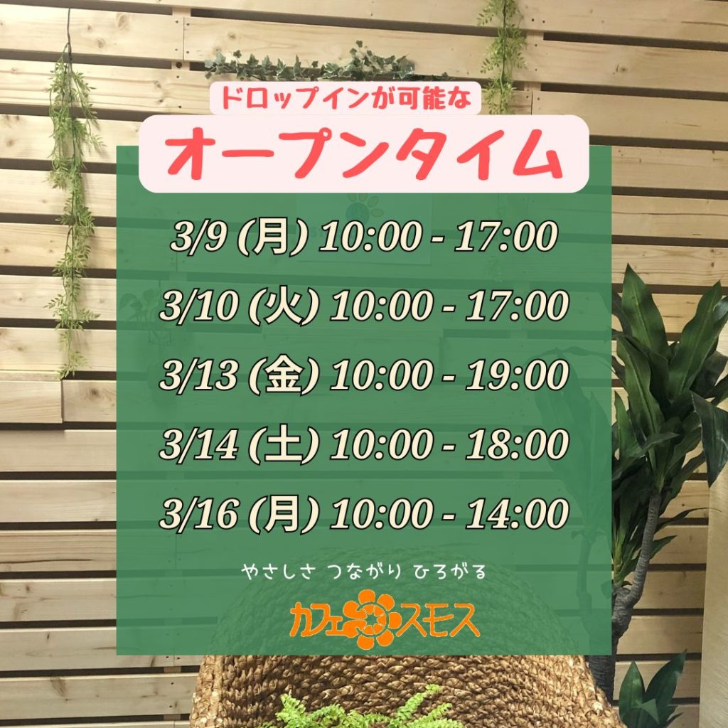 「オープンタイム」今週の予定(変更の場合はsnsにて連絡いたします)