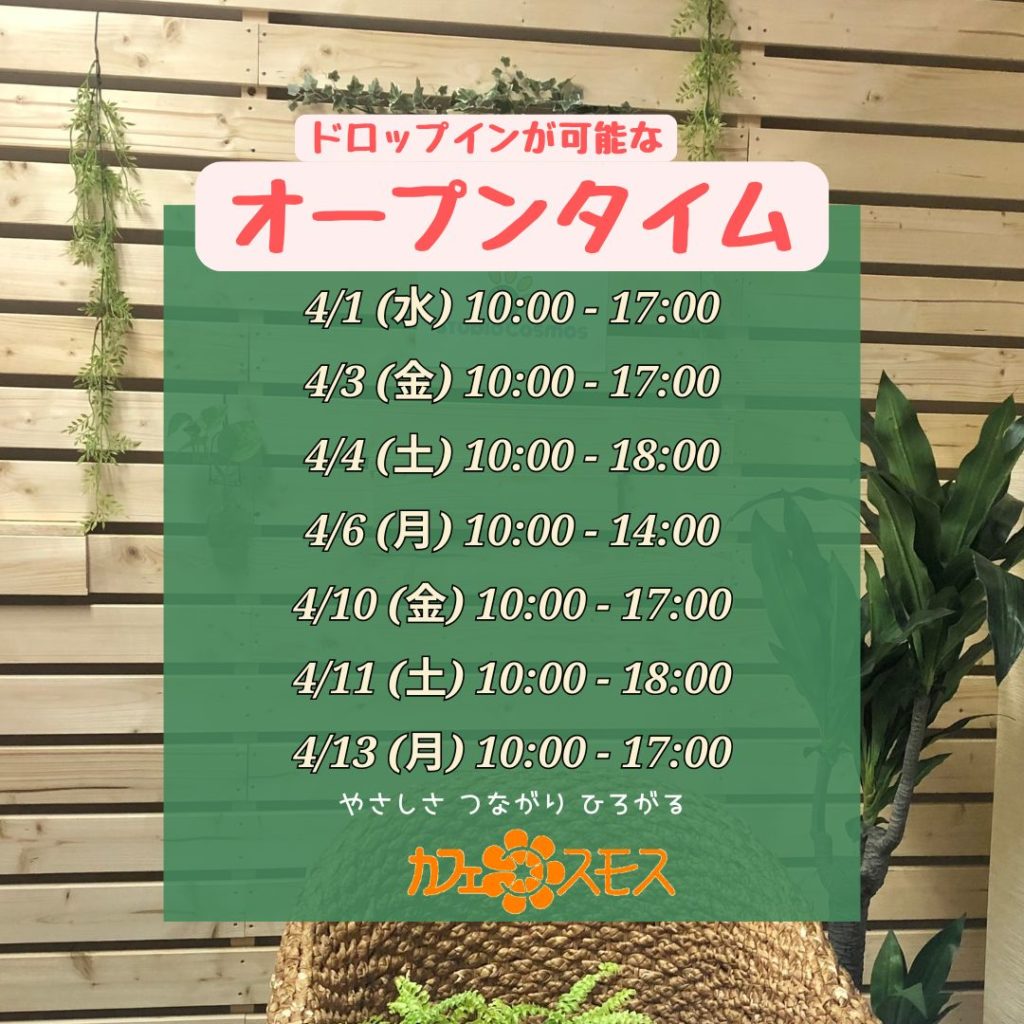 「オープンタイム」今週の予定(変更の場合はsnsにて連絡いたします)